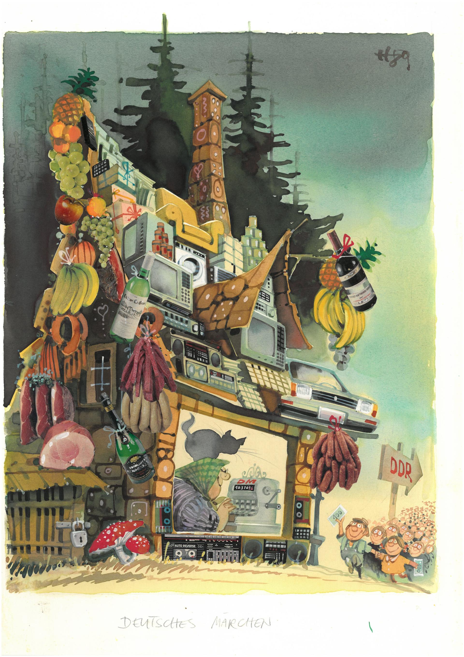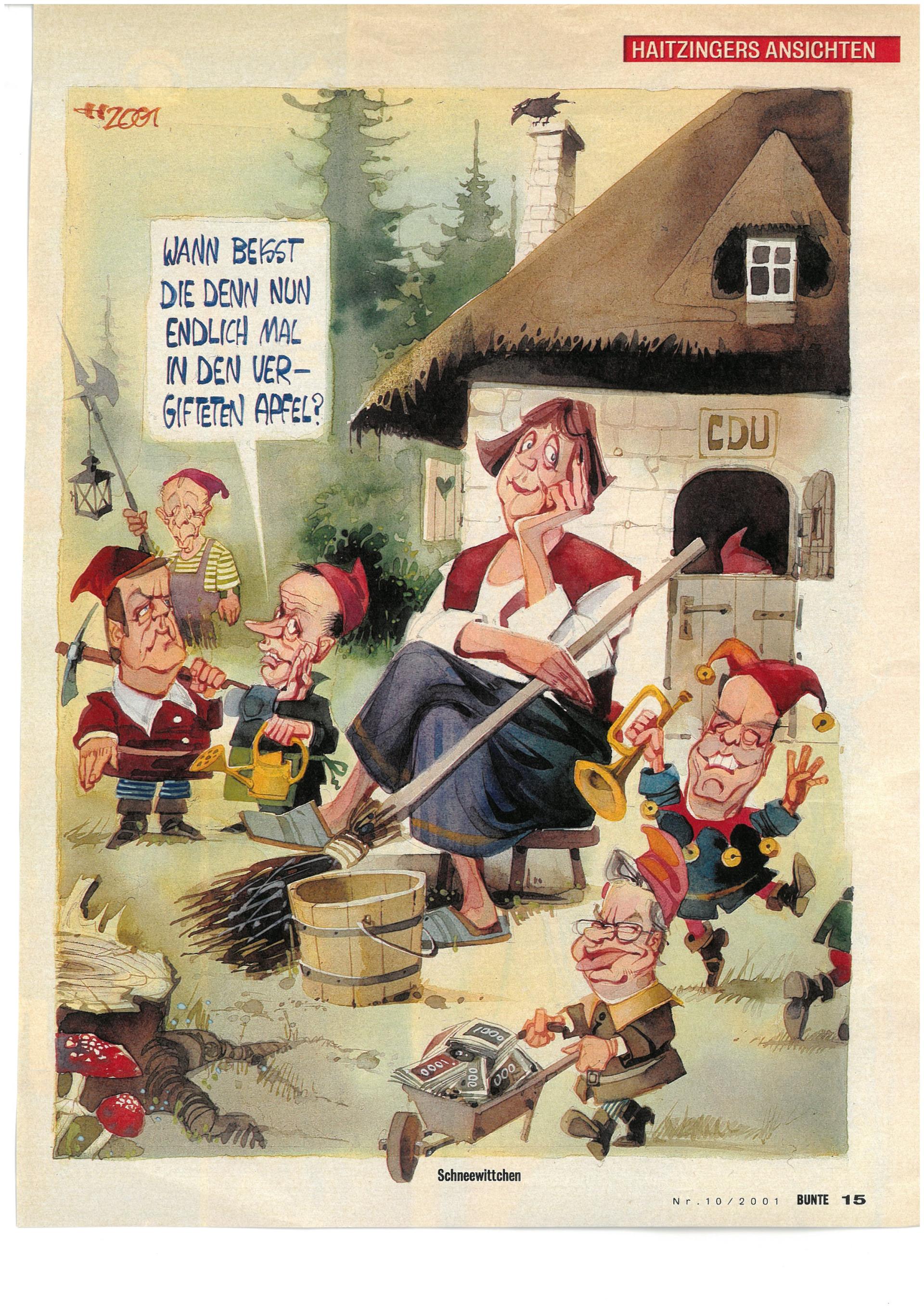 In der Ausstellung zeigt das Burgmuseum Abenberg „Von Aschenputtel bis Zwerg Nase“ eine besondere Auswahl seiner Werke: Haitzingers politische Karikaturen mit märchenhaften Motiven.